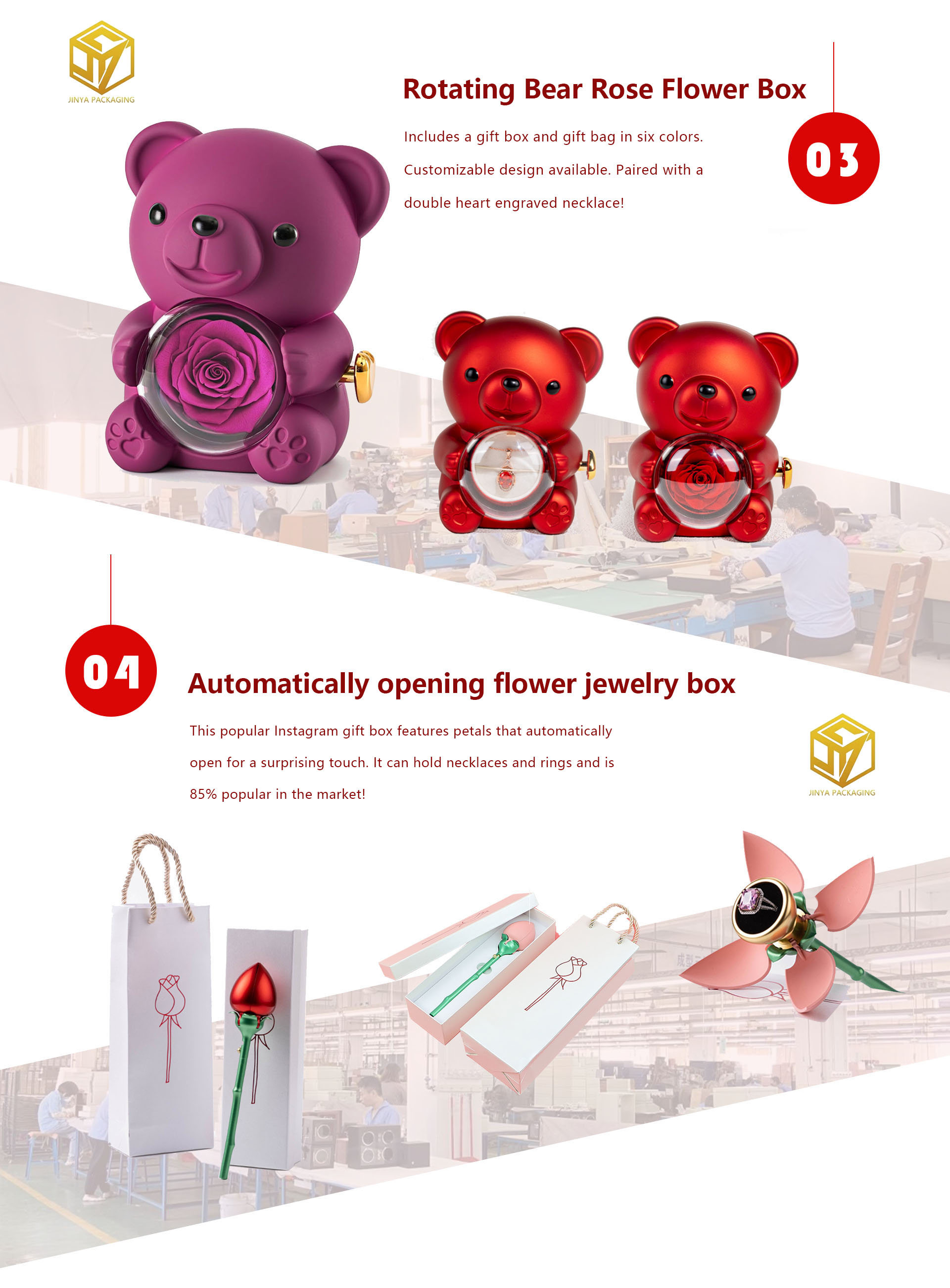 2026 Neue Hot Rose Geschenk box Acryl Kunststoff Rotierende Schmucks cha tulle Rose Teddybär Box für Weihnachten Valentinstag